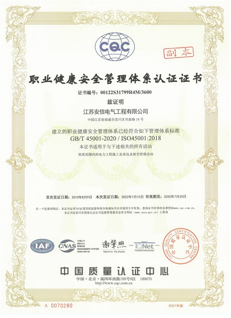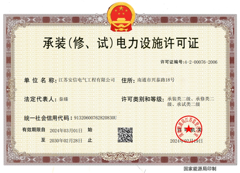 在創(chuàng)業(yè)之初,公司就堅(jiān)持高起點(diǎn)的戰(zhàn)略思路,廣納賢才,集聚行業(yè)精英,創(chuàng)新發(fā)展,做優(yōu)企業(yè)品牌。現(xiàn)已取得:承裝二級(jí)、承修二級(jí)、承試二級(jí),電力工程施工總承包二級(jí),輸變電工程專業(yè)承包二級(jí),建筑工程施工總承包二級(jí),建筑機(jī)電安裝專業(yè)承包二級(jí),地基基礎(chǔ)專業(yè)承包二級(jí)資質(zhì)證書,并通過了質(zhì)量、環(huán)境、職業(yè)健康和安全管理體系認(rèn)證,確保各項(xiàng)工作有序管控。